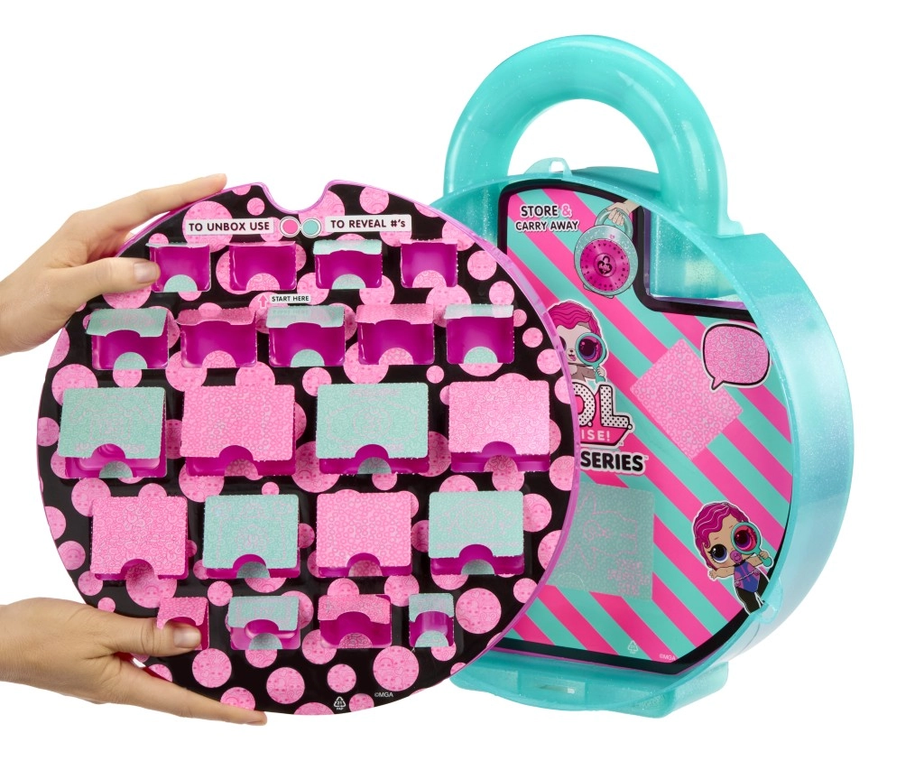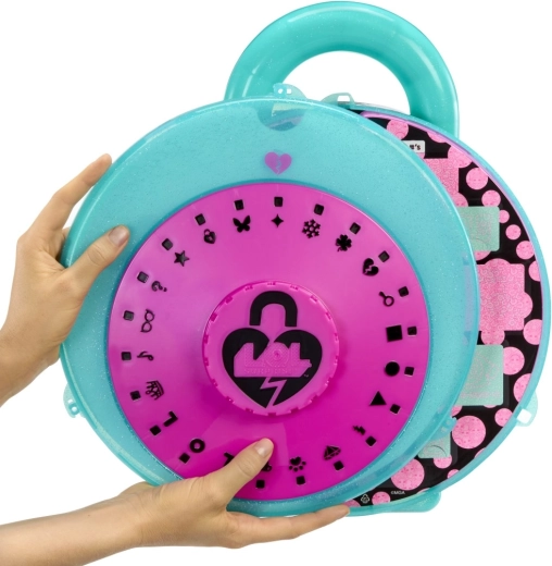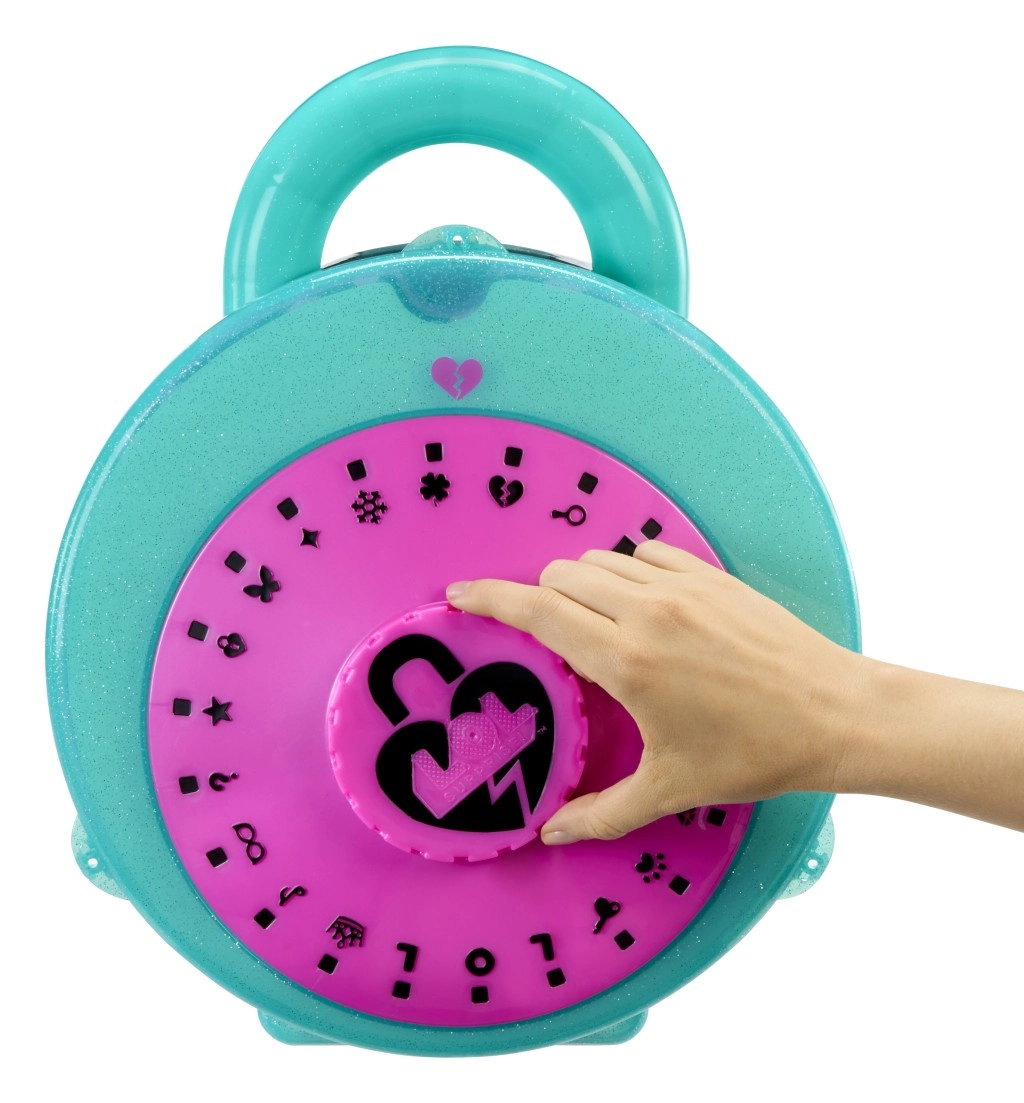 La grande valise ronde en forme de cadenas cache des dizaines de petites fenêtres et un dévoilement interactif à l’aide des lunettes d’espion. Les enfants ouvrent progressivement les compartiments et découvrent une mini poupée Tot, une Lil Sis, un adorable animal, des tenues, déguisements, autocollants et messages cachés. Grâce à sa poignée pratique, elle sert aussi de valise de rangement et de transport.