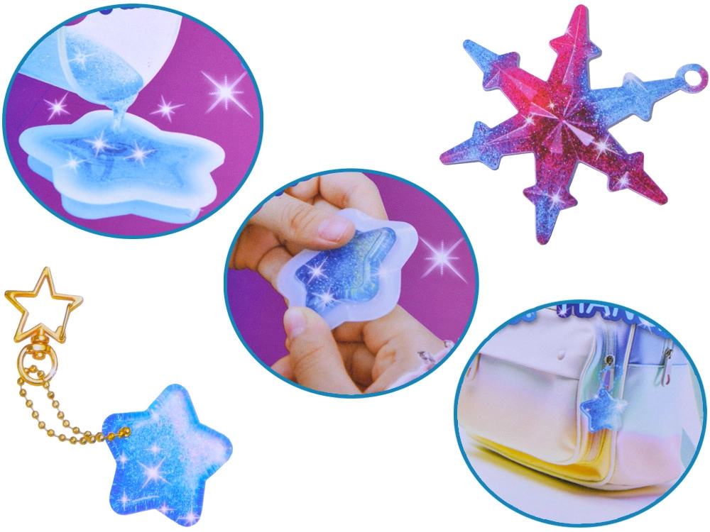 Le kit est idéal pour créer des porte-clés originaux, des bijoux et des cadeaux. Le travail de la résine est ludique, relaxant et le rendu est professionnel – même sans expérience préalable. Pour un meilleur résultat, laissez durcir les pièces environ 24 heures sur une surface plane.