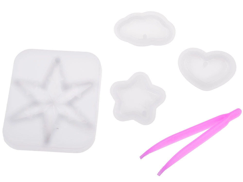 - Moules en silicone transparents (étoile, nuage, cœur, etc.)
