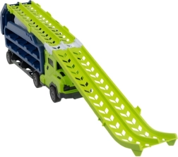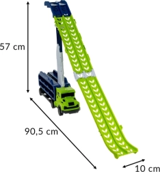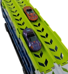 La rampe dépliante à deux voies transforme le transporteur en un set de course dynamique. Idéal pour des duels à deux et des descentes rapides.