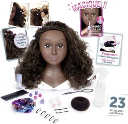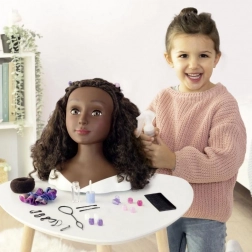 Cette tête à coiffer Afro est une partenaire idéale pour s’entraîner aux tresses, chignons et coiffures modernes. Les boucles réalistes et volumineuses permettent de coiffer, tresser et décorer, et grâce aux accessoires fournis tu réussiras des coiffures pour chaque occasion. Elle offre en plus une fonction magique des lèvres – trempe le pinceau inclus dans l’eau froide et observe la belle coloration des lèvres.