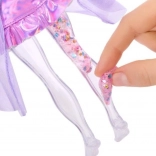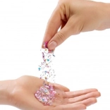 Mélange le slime transparent avec les paillettes et insère-le dans les jambes transparentes de la poupée. Tu crées ainsi instantanément un nouveau style éclatant – et tu peux le changer sans fin.