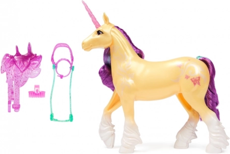 Découvrez la magie du monde Unicorn Academy avec la licorne Leaf ! Cette figurine d’environ 24–28 cm, inspirée de la série sur NETFLIX, possède une corne scintillante, des marquages nacrés de magie végétale, une crinière et une queue colorées ainsi qu’un bride et une selle amovibles. D’un léger mouvement de tête, sa personnalité prend vie et les enfants peuvent revivre le lien d’amitié magique avec la cavalière Ava.