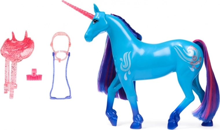 Grâce à la bride et à la selle amovibles, il est facile de varier les scènes de jeu et de stimuler l’imagination. En inclinant légèrement la tête, vous réveillez la personnalité de River et retrouvez sa connexion avec la cavalière Isabel, telle que les enfants la connaissent dans la série sur Netflix. Se combine parfaitement avec d’autres poupées et licornes de la gamme Unicorn Academy (vendues séparément), pour construire petit à petit tout un monde magique.