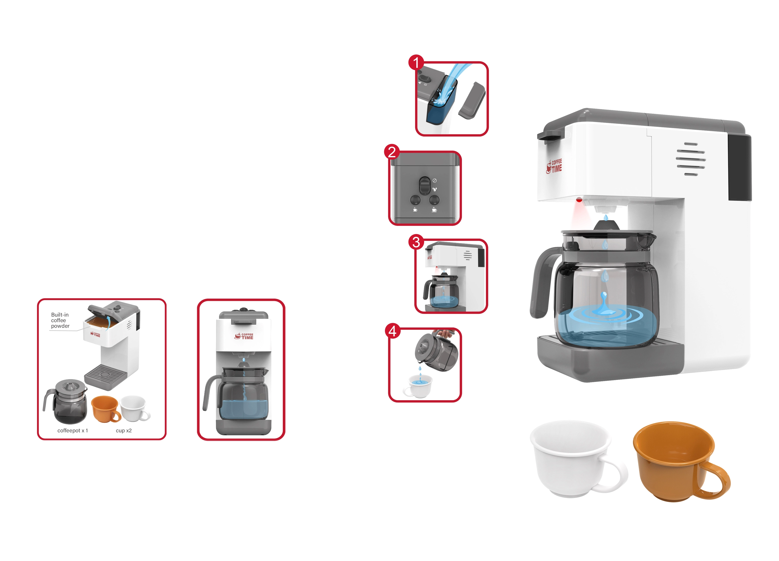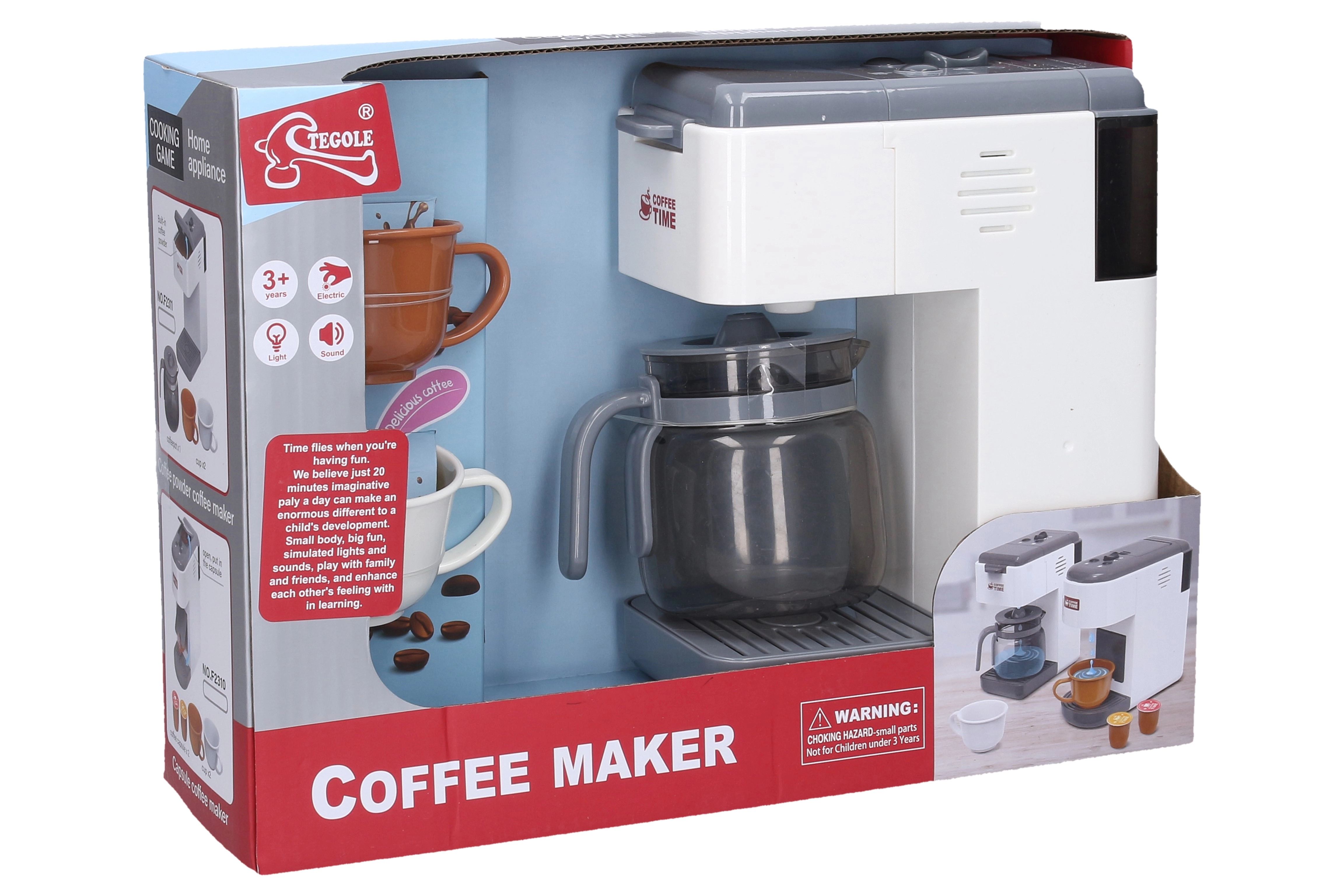 Découvrez une amusante cafetière pour enfants avec carafe qui simule la préparation réelle du café. Il suffit de remplir le réservoir d’eau et la machine remplit automatiquement la carafe. Grâce aux effets lumineux et sonores, le jeu est encore plus réaliste, tandis que le bouton on/off garantit une manipulation facile même pour les plus petits.
