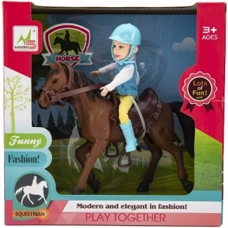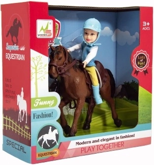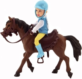 Tous les petits amoureux des chevaux seront ravis par ce jockey avec son cheval, équipé d’une bride et d’une selle. Le jockey doit porter une tenue d’équitation et un casque. La crinière et la queue du cheval ne sont pas coiffables. Fabriqué avec des matériaux de qualité et résistants. Dimensions de l’emballage : 23 × 23 × 9,5 cm. Convient aux enfants à partir de 3 ans.