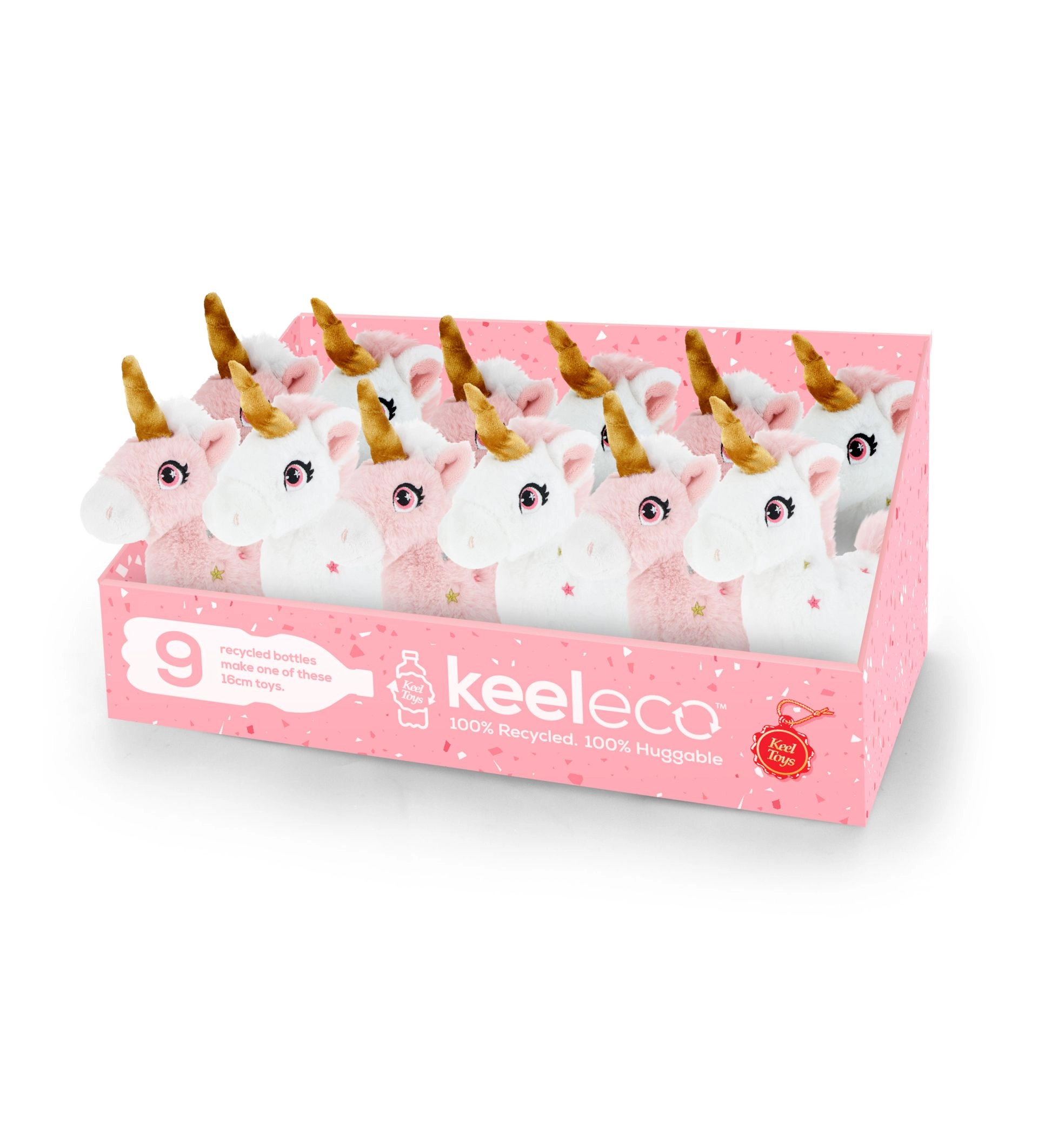 La gamme KEELECO de KEEL TOYS établit un nouveau standard dans la fabrication durable de peluches. Chaque pièce est réalisée à partir de bouteilles PET recyclées, transformant les déchets en une peluche magnifique et de qualité au charme irrésistible. La licorne rose deviendra un compagnon fidèle et un cadeau plein de style.