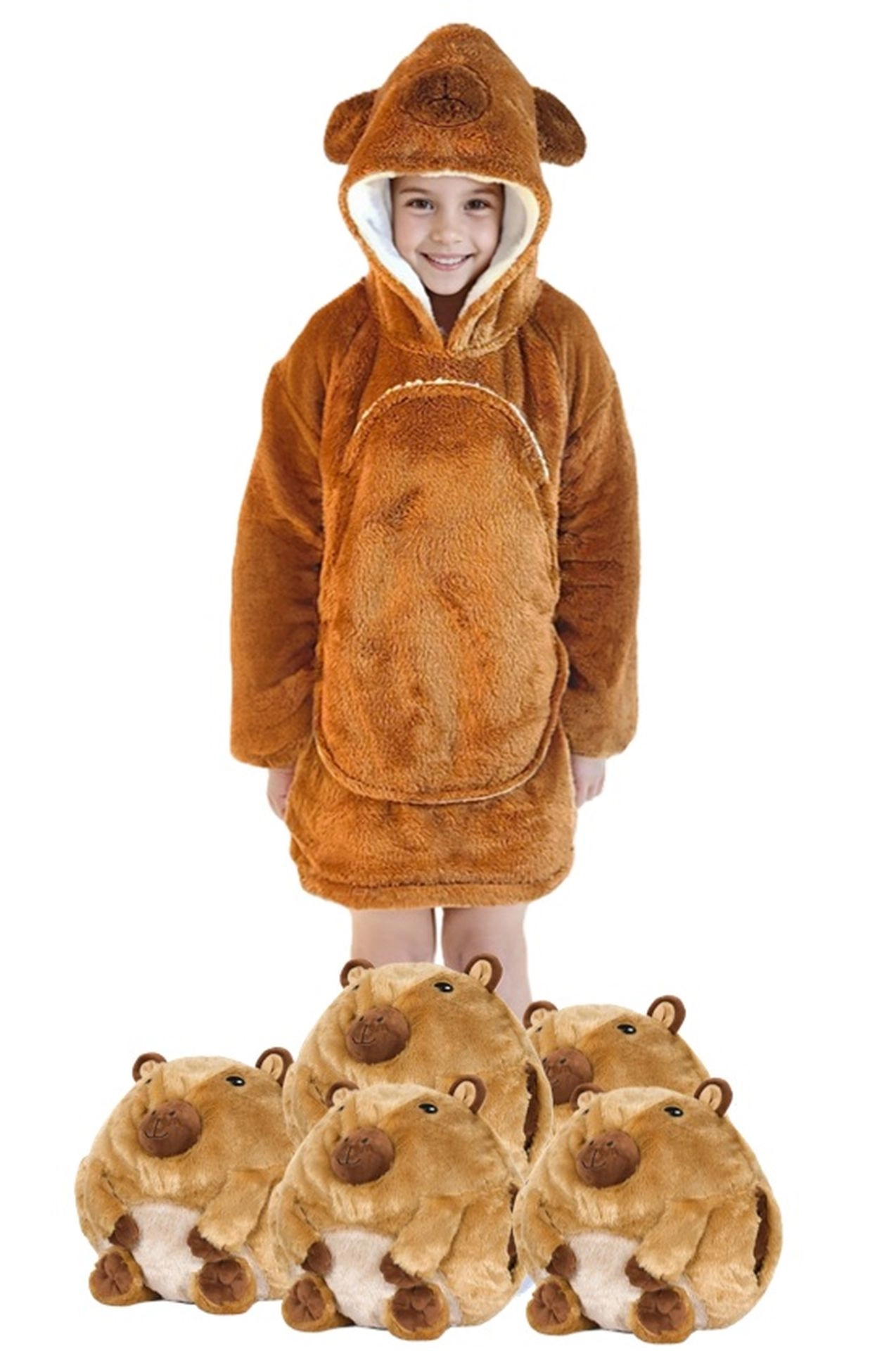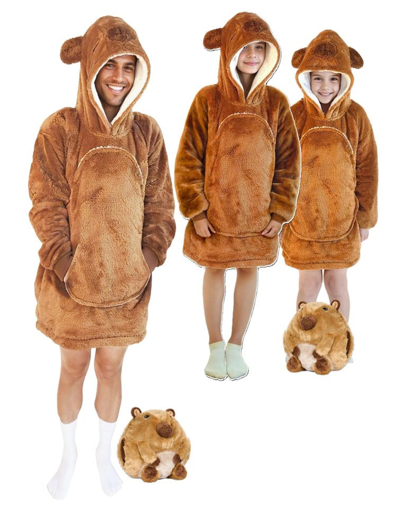 Cette couverture sweat à capuche pour enfants au design capybara est comme un câlin qui réchauffe de la tête aux pieds. La couche intérieure en polaire sherpa est moelleuse et chaude, tandis que l’extérieur en flanelle douce est soyeux au toucher. Grâce à sa coupe oversize, les enfants se sentent à l’aise devant la télé, en jouant ou en se reposant.