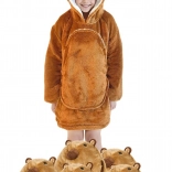 Une grande capuche avec petites oreilles et une poche avant spacieuse gardent la tête et les mains bien au chaud. Le matériau est résistant et facile d’entretien – lavable en machine à 30 °C et séchage en machine à basse température. Parfait pour l’intérieur comme pour l’extérieur : maison, chalet, camping ou moments au jardin.