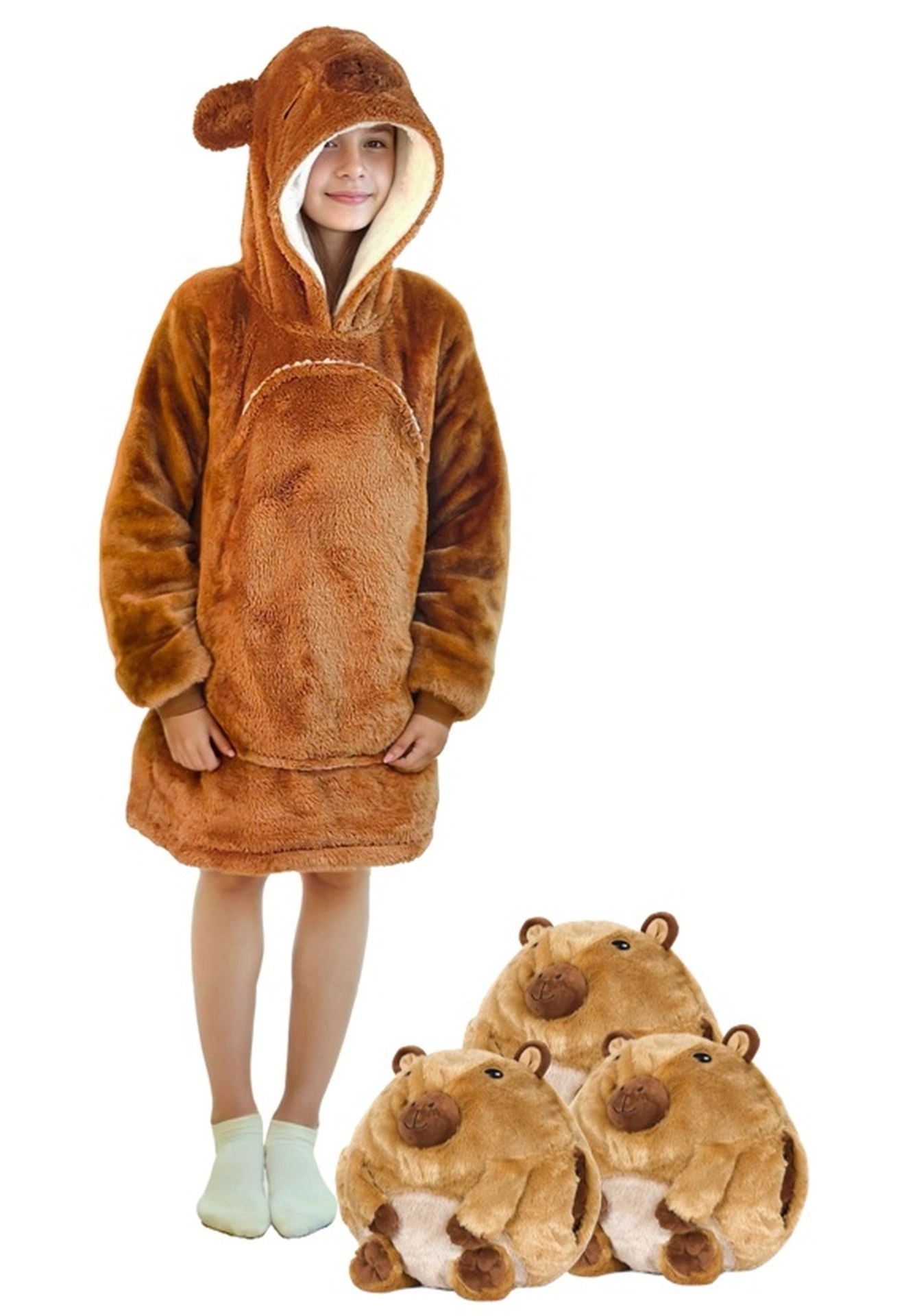 La grande capuche avec oreilles d’animaux et la poche frontale spacieuse réchauffent les mains et cachent les petits trésors. Grâce à sa coupe oversize, elle est confortable et ne limite pas les mouvements – idéale pour chiller sur le canapé, camper ou profiter des soirées fraîches sur la terrasse.