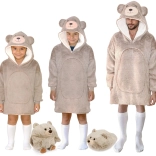 Cette couverture-sweat chaude OURS de Cozy Noxxiez est un compagnon indispensable pour tous les petits amateurs de confort. Confectionnée en flanelle ultra douce et doublée à l’intérieur d’un polaire sherpa duveteux, elle procure une chaleur agréable de la tête jusqu’aux genoux. Grâce à sa coupe ample, elle n’entrave pas les mouvements, et les enfants l’adorent pour regarder des dessins animés, lire ou jouer.
