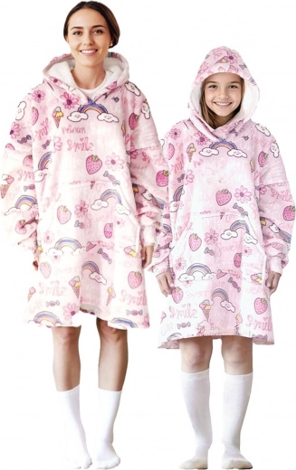 La conception pratique comprend une grande capuche et une poche kangourou spacieuse pour les mains ou les petits objets. Son imprimé rose ludique à motifs de gourmandises ravira chaque enfant et fera de ce sweat-couverture une excellente idée cadeau.