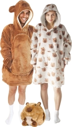 Cette couverture sweat COZY NOXXIEZ à motif capybara est idéale pour chiller sur le canapé, lire, travailler sur PC, camper ou s’installer au jardin par temps plus frais. La coupe oversize n’entrave pas les mouvements et réchauffe des épaules jusqu’aux genoux. C’est un excellent cadeau pour femmes et hommes, qui séduit par son design ludique et sa vraie fonctionnalité.