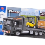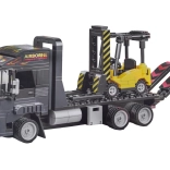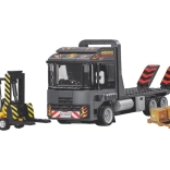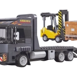 Le tracteur avec plateau et rampes rabattables permet de charger et transporter le chariot élévateur – exactement comme dans la réalité.