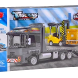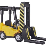 Ce jeu de construction technique apporte l’univers du transport et de la logistique dans la chambre des enfants. Construisez le tracteur avec plateau et rampes rabattables, chargez le chariot élévateur sur le plateau et prenez « la route ». Une palette de couleurs bleu foncé, gris et jaune réaliste et les autocollants fournis donnent aux modèles l’allure authentique des engins utilitaires.