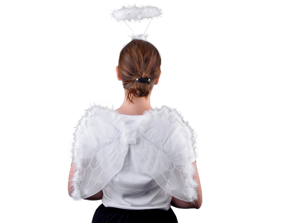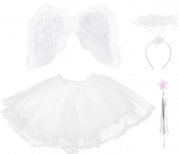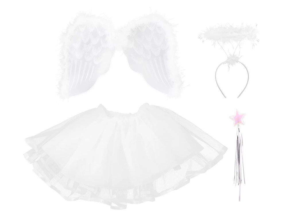 - Ailes, auréole sur serre-tête, jupe tutu, baguette magique