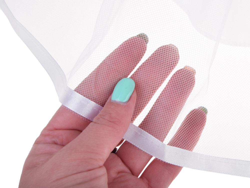 - Tulle/mesh, textiles légers, plastique (baguette), fil métallique (auréole)