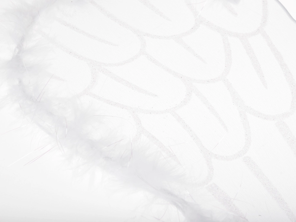 Des ailes décoratives bordées de plumes, légères et maintenues par des élastiques. Dimensions environ 42 cm de large et 33 cm de haut – elles s’ajustent facilement et ressortent magnifiquement en photo.