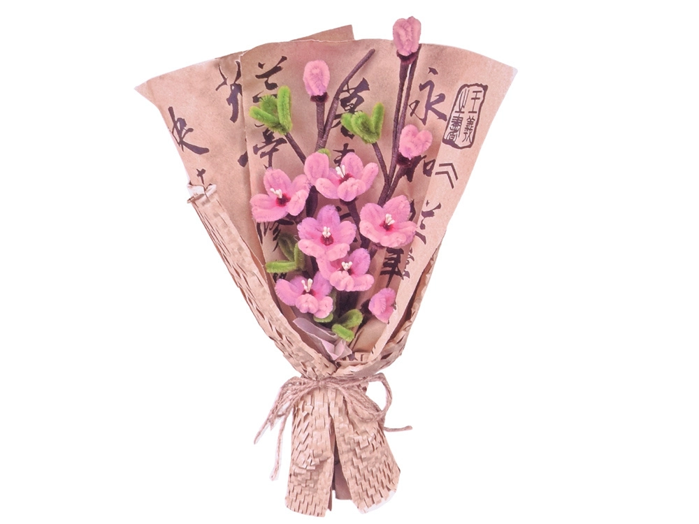 Découvrez la magie de la SAKURA japonaise sous forme de bouquet fait main. Le kit contient des fils chenille colorés, des étamines décoratives, du ruban floristique, du papier d’emballage pour bouquet et de la ficelle – bref, tout pour commencer à créer immédiatement. Le bouquet fini est élégant et, grâce à la texture délicate des matériaux, s’intègre aussi bien dans un intérieur moderne que traditionnel.