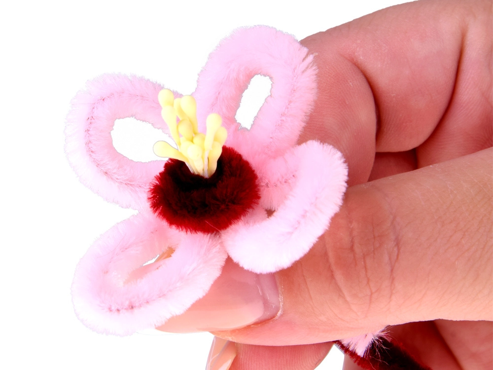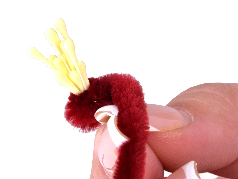 Grâce à la combinaison de tiges flexibles et d’étamines décoratives, vous créez des fleurs au rendu authentique. Les matériaux peuvent être torsadés, enroulés et fixés simplement avec du ruban floristique.