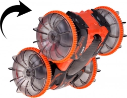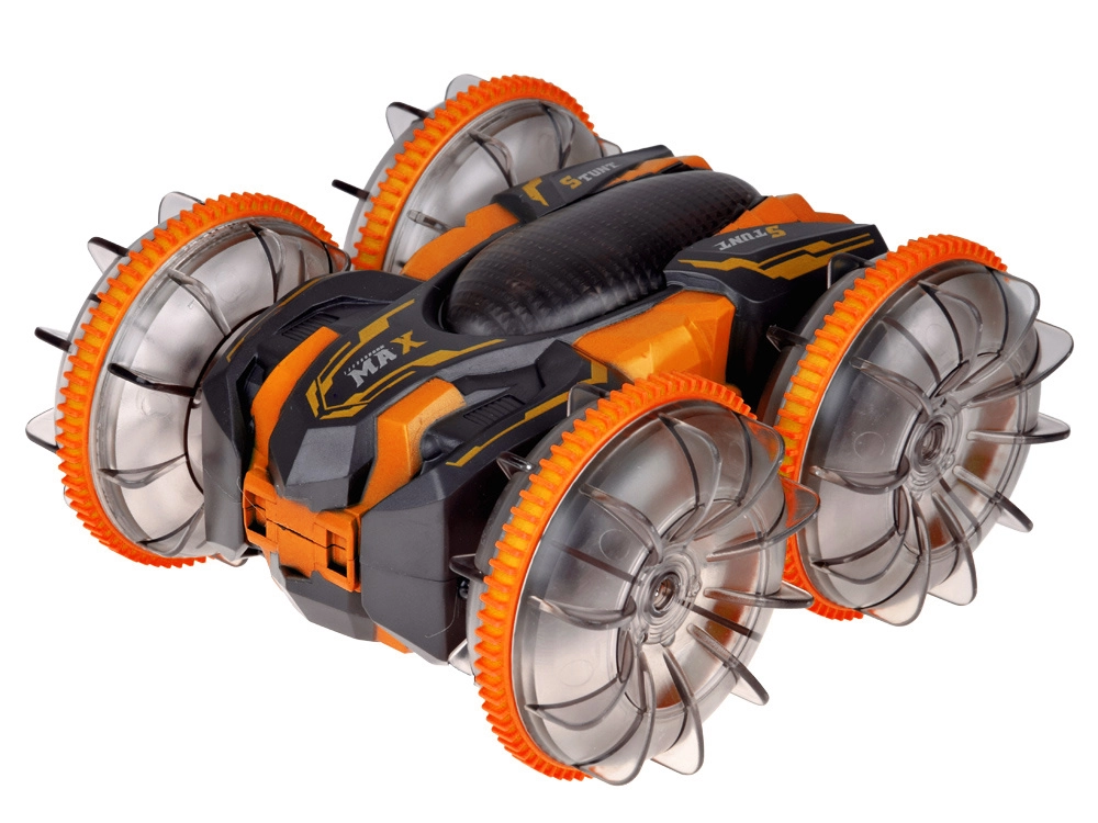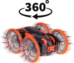 Découvrez une conduite riche en sensations avec la voiture RC cascadeuse amphibie, à l’aise sur gazon, sable, carrelage et à la surface de l’eau. De grandes roues transparentes au profil marqué et à l’éclairage LED apportent un effet show à chaque trajet et une excellente adhérence. Grâce aux rotations à 360°, la voiture continue sa course même après s’être renversée de l’autre côté.