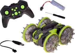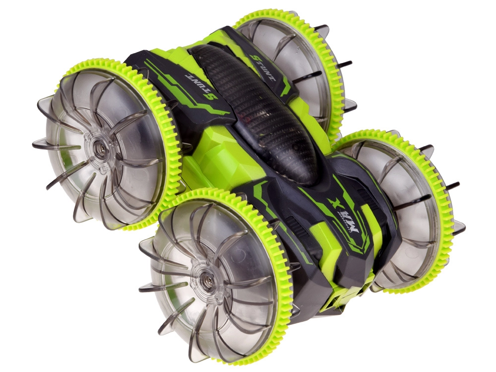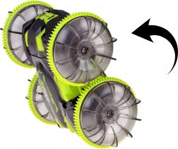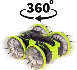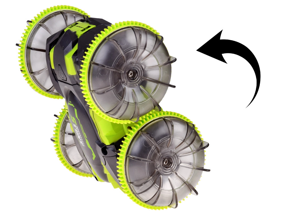 Faites le plein d’adrénaline avec cette voiture RC cascadeuse amphibie, à l’aise sur l’herbe, la moquette, le carrelage et sur l’eau. Ses grandes roues transparentes au profil marqué et à éclairage LED assurent une excellente adhérence et un look spectaculaire de jour comme de nuit. Grâce à la rotation à 360°, elle continue de rouler même retournée.
