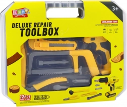 Le set comprend aussi un marteau, une scie, une pince, un tournevis et une clé, permettant aux petits bricoleurs d’exercer coordination, patience et pensée créative. La valisette rigide garde toutes les pièces ensemble et facilite le rangement comme le transport à la maison et en déplacement.