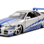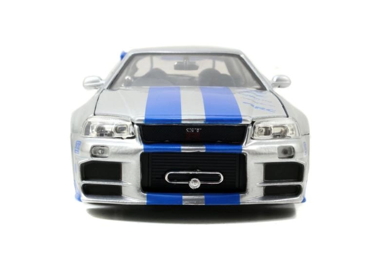 Ajoutez à votre vitrine une légende de la scène japonaise – le Nissan Skyline GT‑R R34 finement détaillé, inspiré du film Fast and Furious. Le modèle combine une carrosserie métallique robuste avec des accessoires plastiques précis, des bandes bleues de course et un bodykit fidèle.
