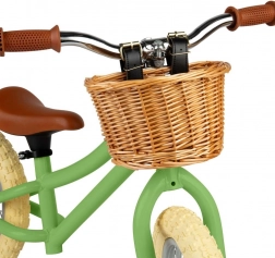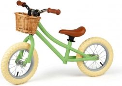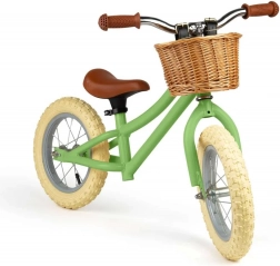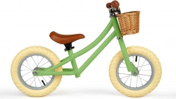 Une élégante draisienne d’équilibre dans une douce teinte verte aide les enfants à développer naturellement leur équilibre et leur assurance à vélo. Grâce à son cadre métallique robuste, à ses pneus à air, à sa selle réglable en hauteur et à son panier en osier pratique, elle est idéale pour les premières expériences de conduite sans pédales. Conforme aux normes de sécurité européennes et traitée avec des peintures non toxiques.