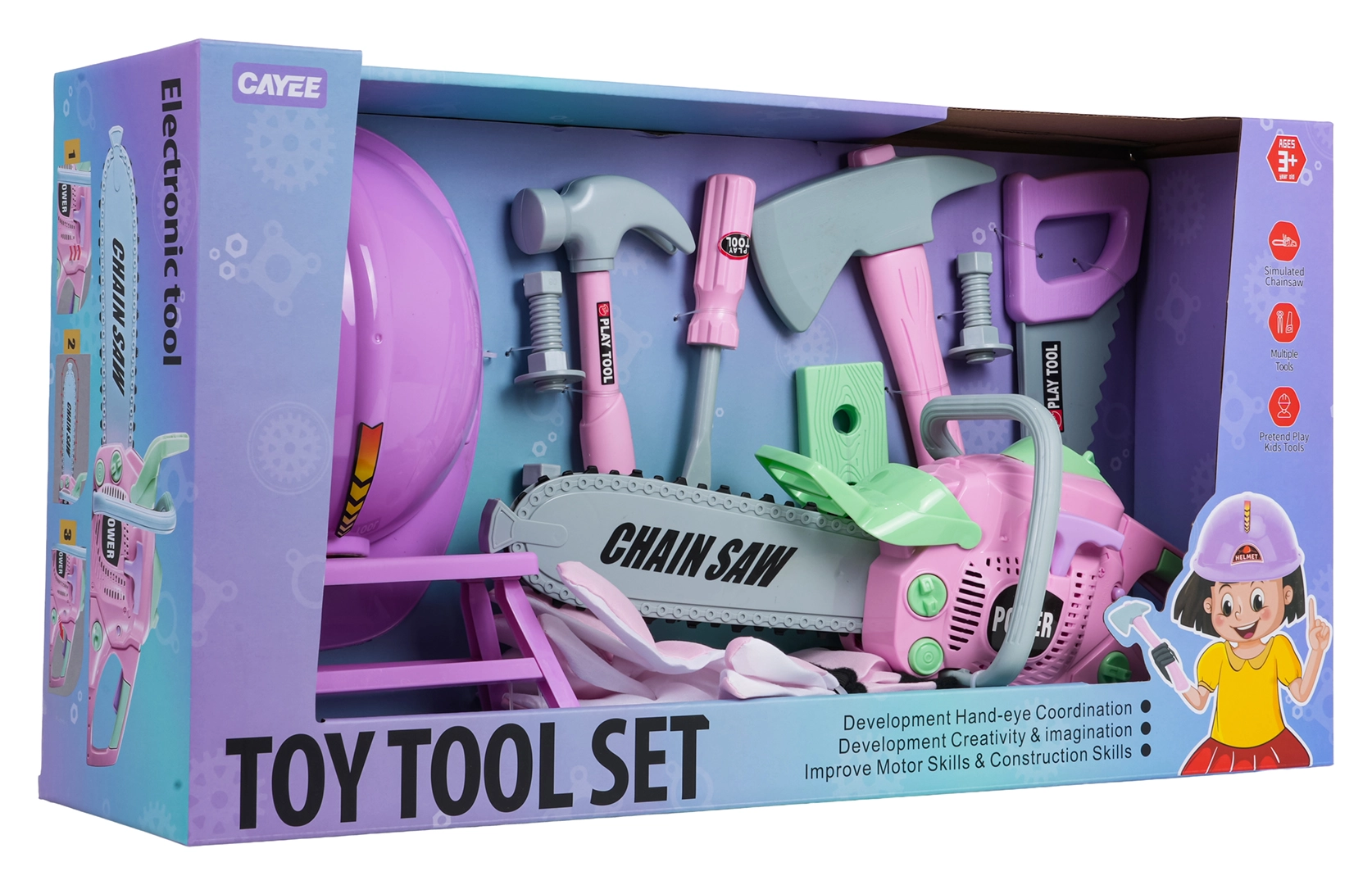 L’ensemble d’outils rose pour enfants dès 3 ans ravira les petits bricoleurs grâce à son riche équipement. Il comprend une tronçonneuse avec effets sonores, un casque de protection et des gants, un marteau, une scie, un tournevis, des vis ainsi qu’une table – mini établi. Fabriqué en plastique de qualité, sûr et léger pour les mains des enfants.