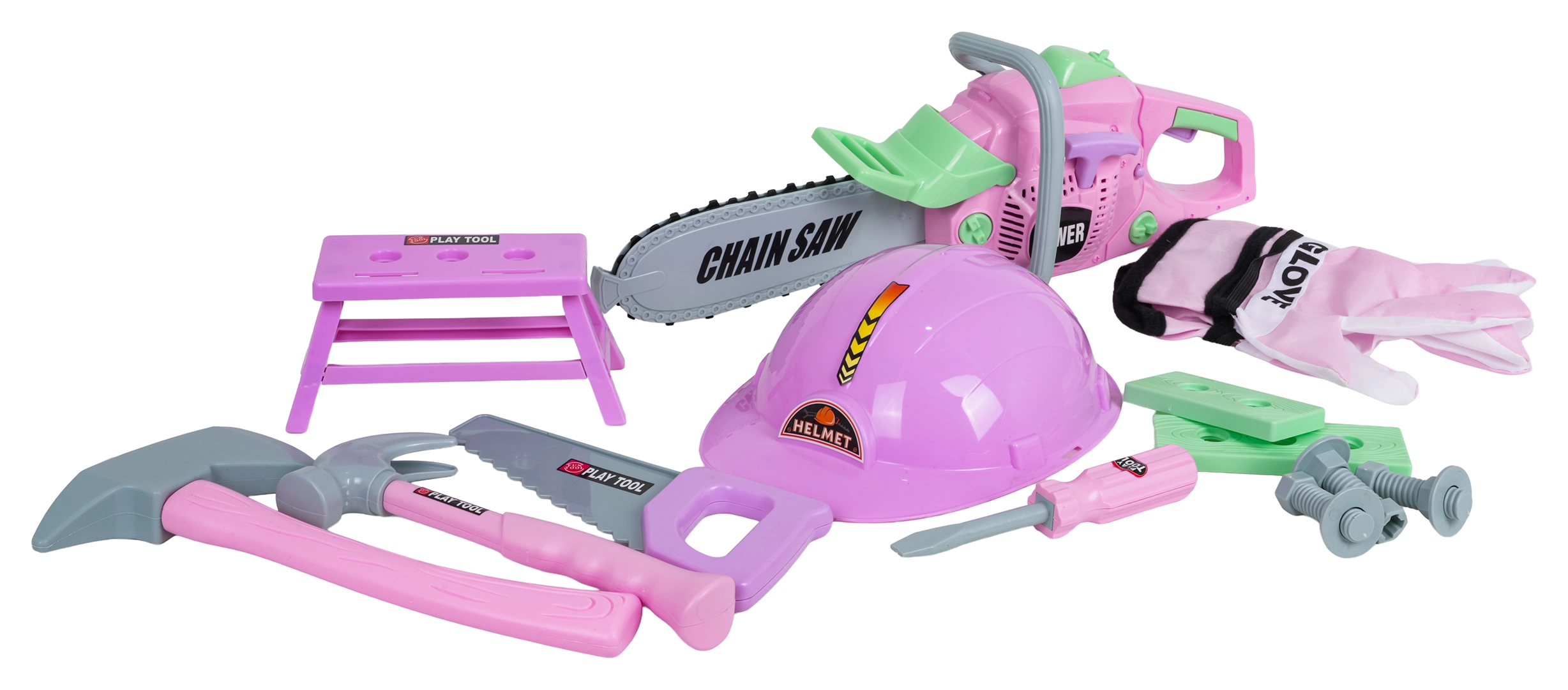 L’ensemble comprend un casque rose et des gants souples pour un jeu plus sûr et plus réaliste des petits réparateurs.