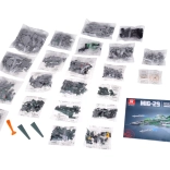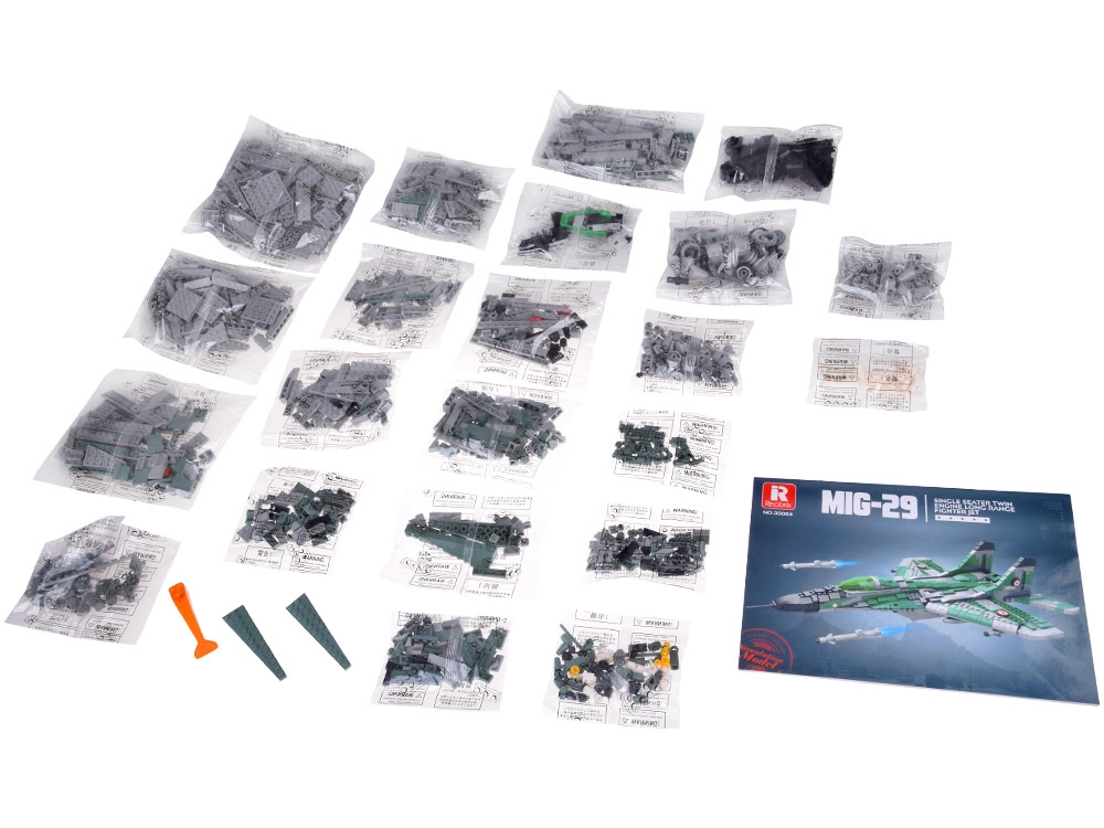 La boîte contient de nombreux sachets de pièces et une notice claire du MIG‑29. La construction est fluide et lisible du début à la fin.