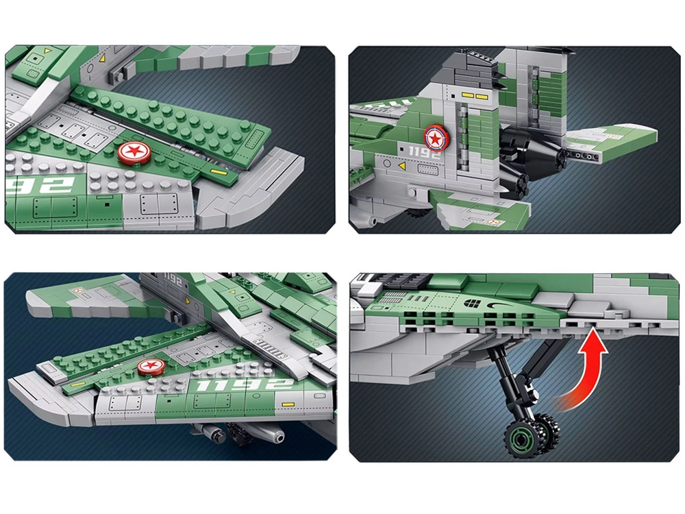 - Éléments fonctionnels : train d’atterrissage, missiles amovibles, ailes et empennages détaillés