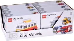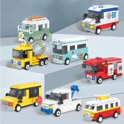 La gamme comprend des machines urbaines et de chantier populaires : tram, bus, bus scolaire, ambulance, camion de pompiers, tracteur, toupie à béton et camping-car/van. Chaque modèle est un set autonome avec un mode d’emploi illustré, adapté aussi aux constructeurs débutants.