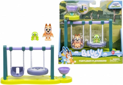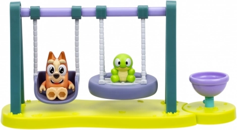 - Base de jeu avec cadre, 2 balançoires, plateau tournant, figurine exclusive de Bingo, figurine de petite tortue