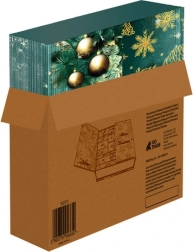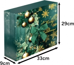 Le carton laminé rigide dans une combinaison vert-or et le ruban en tissu en font un élément décoratif de Noël. Il a fière allure sous le sapin comme sur une commode.