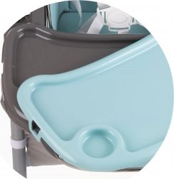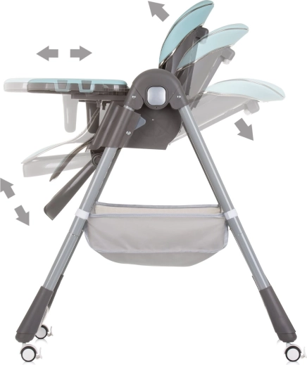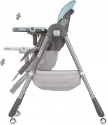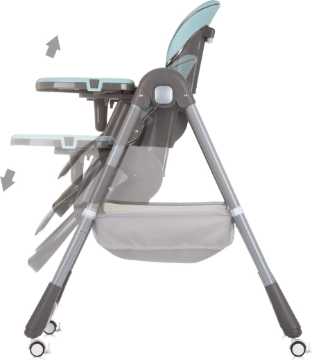 Le plateau double avec partie supérieure amovible facilite l’entretien et le coulissement sur 4 positions s’adapte à chaque situation. L’arche de jeux avec jouets occupe le bébé pendant que vous pouvez dresser la table en toute tranquillité. Les quatre roulettes facilitent les déplacements dans l’appartement et le panier de rangement garde tous les petits indispensables à portée de main. Après le repas, vous pouvez replier la chaise de façon compacte pour économiser de la place.