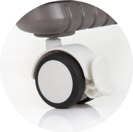 Quatre roulettes pour un déplacement fluide dans la maison et une structure pliable pour gagner de la place lors du rangement.