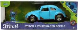 Profitez du design iconique de la Volkswagen classique avec l’énergie attachante de Stitch. Ce modèle en métal finement réalisé 1959 VW Beetle 1:32 offre des détails réalistes, des portières ouvrantes et un mouvement fluide grâce aux roues libres. Il comprend une figurine Stitch thématique qui apportera une touche ludique à votre collection ou votre étagère.
