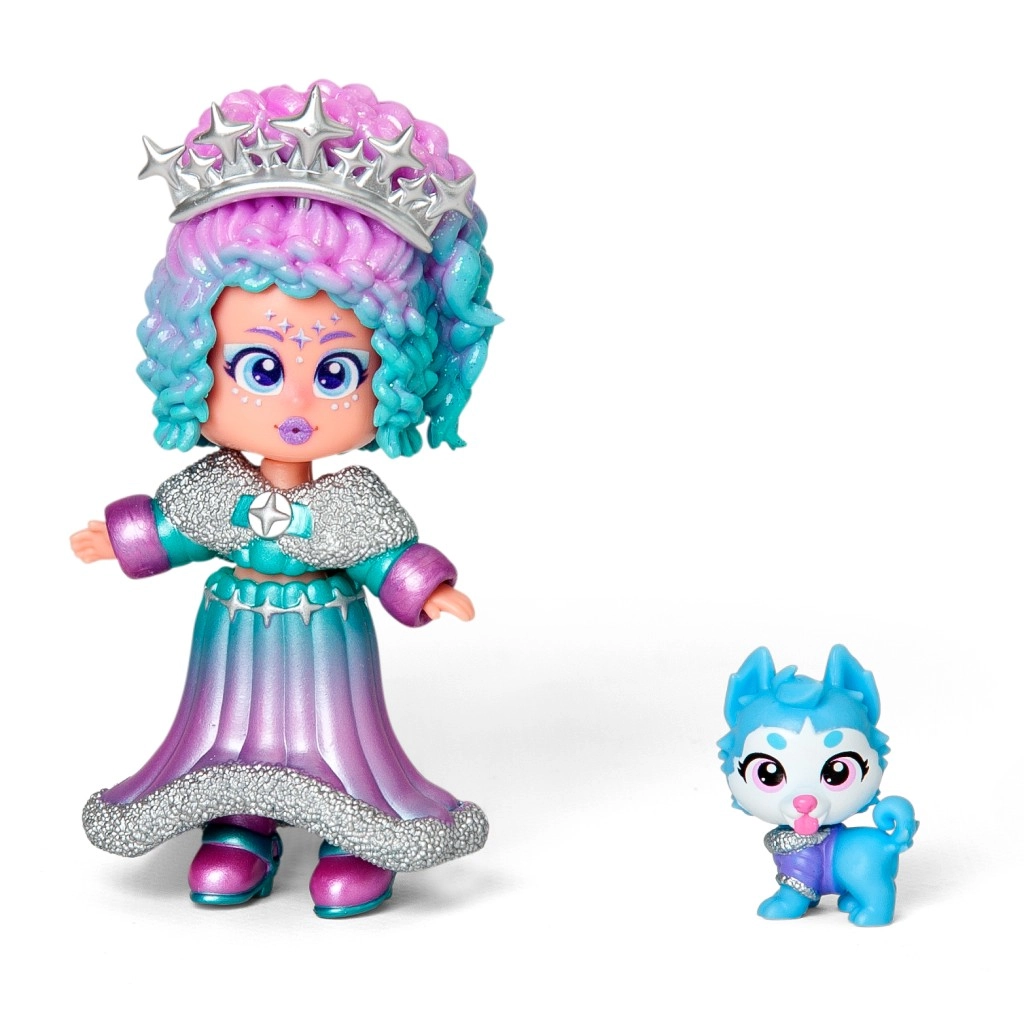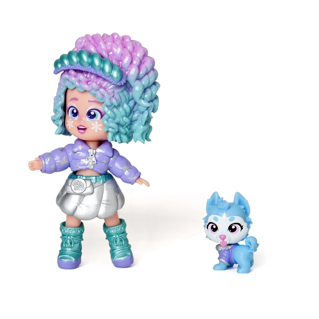 Une poupée stylée aux cheveux marquants et accents brillants, accompagnée d’un adorable petit chien pour encore plus d’histoires de jeu.