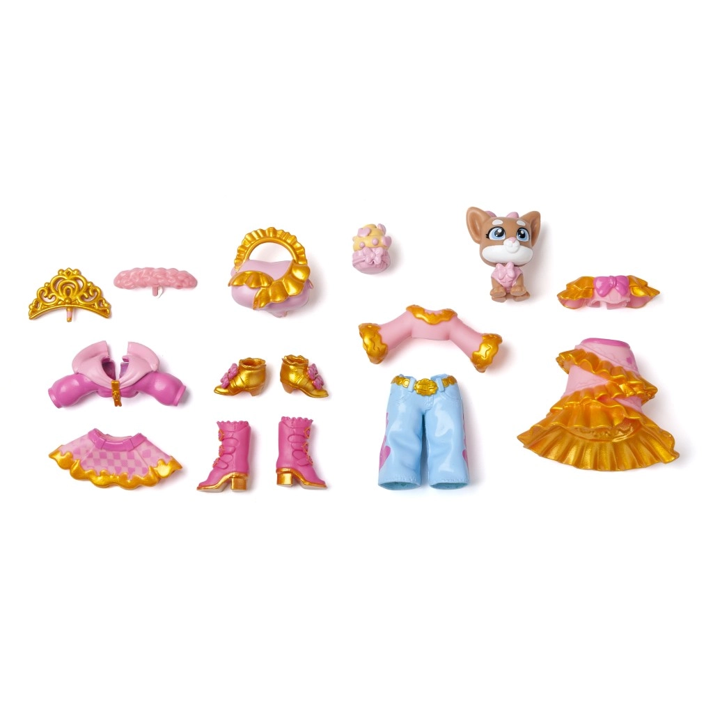 - 1 poupée Taylor, 3 tenues, 2 paires de chaussures, 2 tiares, encas, animal de compagnie, sac/boîte de rangement en forme de cœur