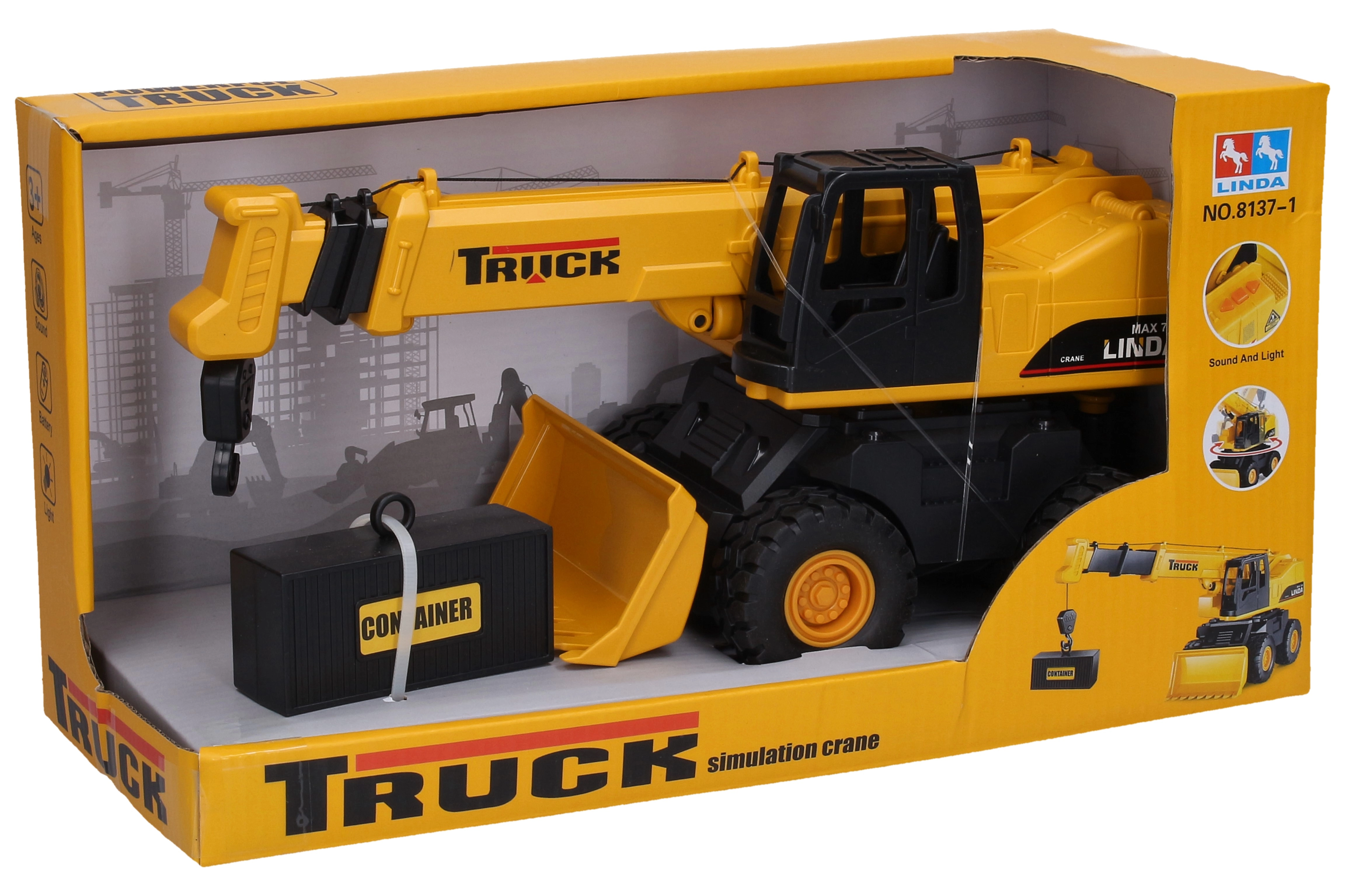 Découvrez l’univers du chantier avec une grue à inertie qui séduira les enfants grâce à ses fonctions réalistes. Grâce aux effets sonores activés par des boutons sur le toit et au conteneur inclus, les petits constructeurs profiteront d’heures de jeu créatif.