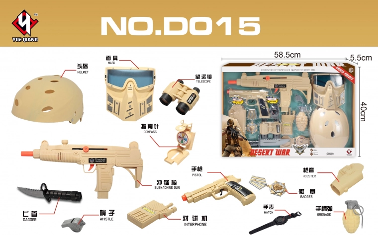 Découvrez un jeu de soldats amusant et sûr avec cet ensemble richement équipé en couleur sable. Il comprend jusqu’à 14 pièces pour des jeux de rôle créatifs, dont un fusil manuel avec bruit de tir et un pistolet à piles. Idéal pour les enfants dès 3 ans, fabriqué avec un sens du détail pour une expérience de jeu authentique à la maison comme en plein air.