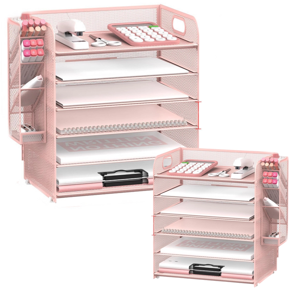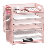 Un organiseur de bureau en métal rose au style élégant qui garde votre espace de travail ordonné et chic. Il offre 5 compartiments spacieux pour les accessoires de bureau, est fabriqué en métal laqué avec une structure maillée pour plus de résistance et de stabilité. Grâce à ses dimensions compactes, il s’adapte à tout bureau et apporte à votre intérieur ordre et design moderne.