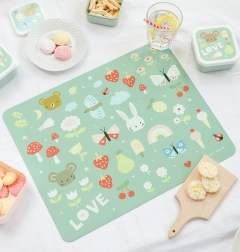 Ses dimensions généreuses de 43 × 34 cm offrent suffisamment d’espace pour manger confortablement et pour les activités créatives. La couche antidérapante maintient le set bien en place, réduisant les glissements afin que tout reste là où il faut.