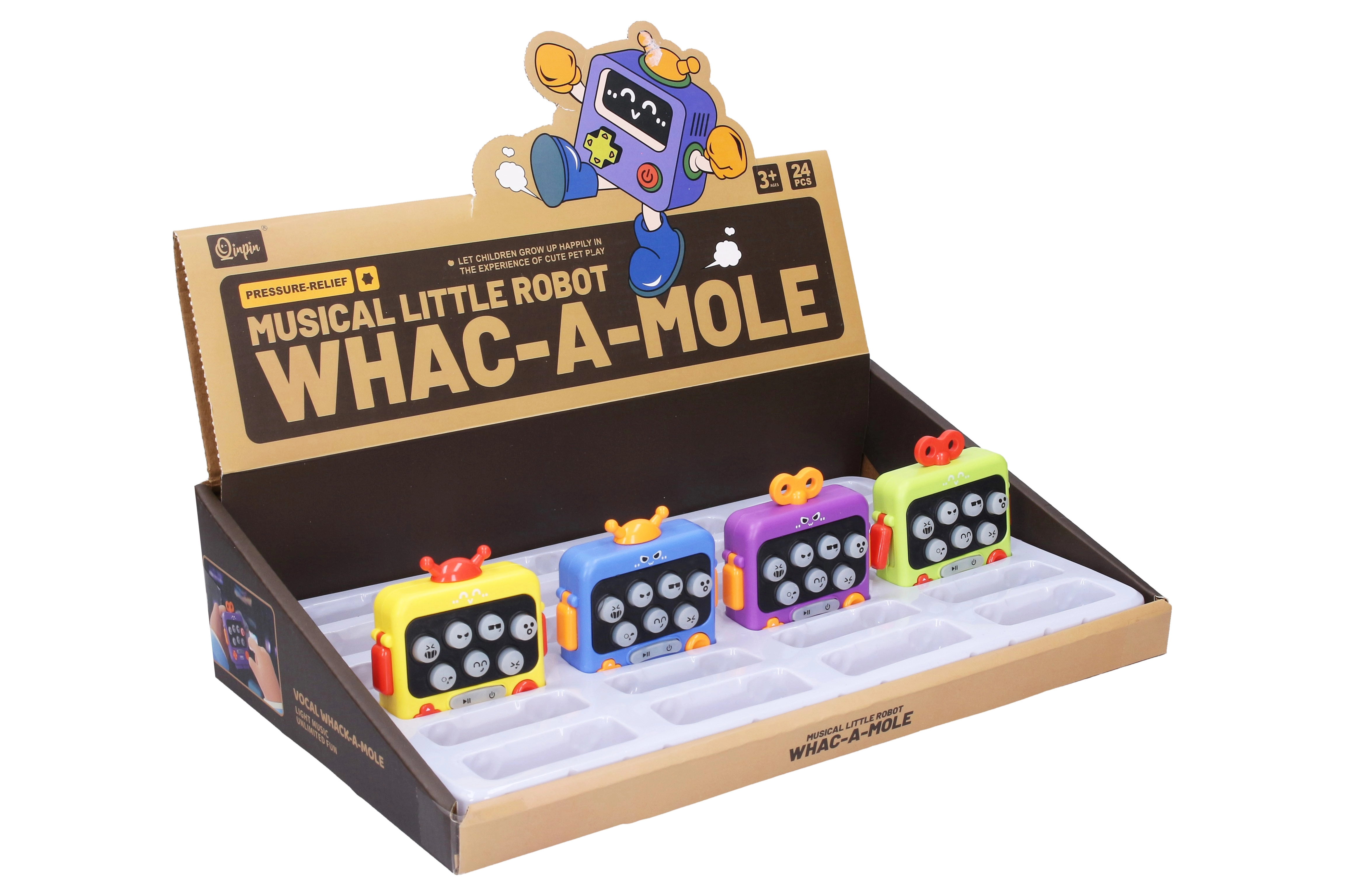 Un jeu de poche amusant, Tape la taupe, apporte de l’action rapide et entraîne la réactivité. Une fois allumé, les boutons lumineux avec des visages commencent à s’allumer et le joueur doit réagir rapidement et appuyer à temps sur les bons boutons. Format compact de 7 cm, piles incluses et 4 variantes de couleur pour encore plus de fun.