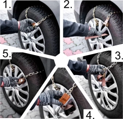 - 8× chaîne à neige, gants, clé, sac de rangement