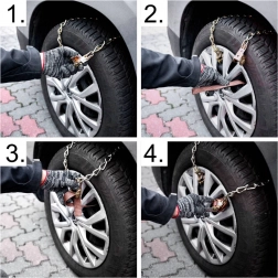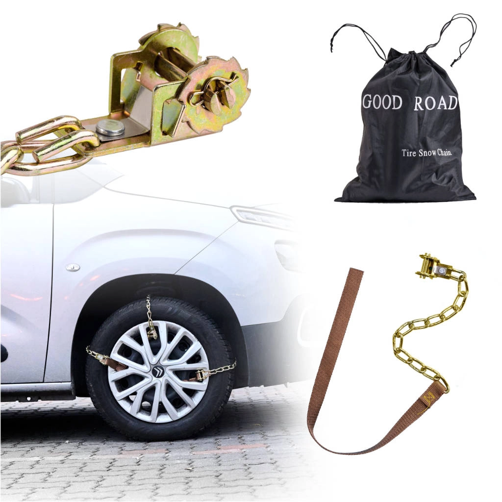 Ne laissez pas l’hiver vous surprendre. Ces chaînes à neige universelles en métal améliorent la traction et la stabilité du véhicule sur les routes enneigées et verglacées. Grâce à leur longueur réglable, elles s’adaptent parfaitement à des pneus de différentes largeurs (env. 16,5–26,5 cm) et s’installent rapidement, même par mauvais temps.