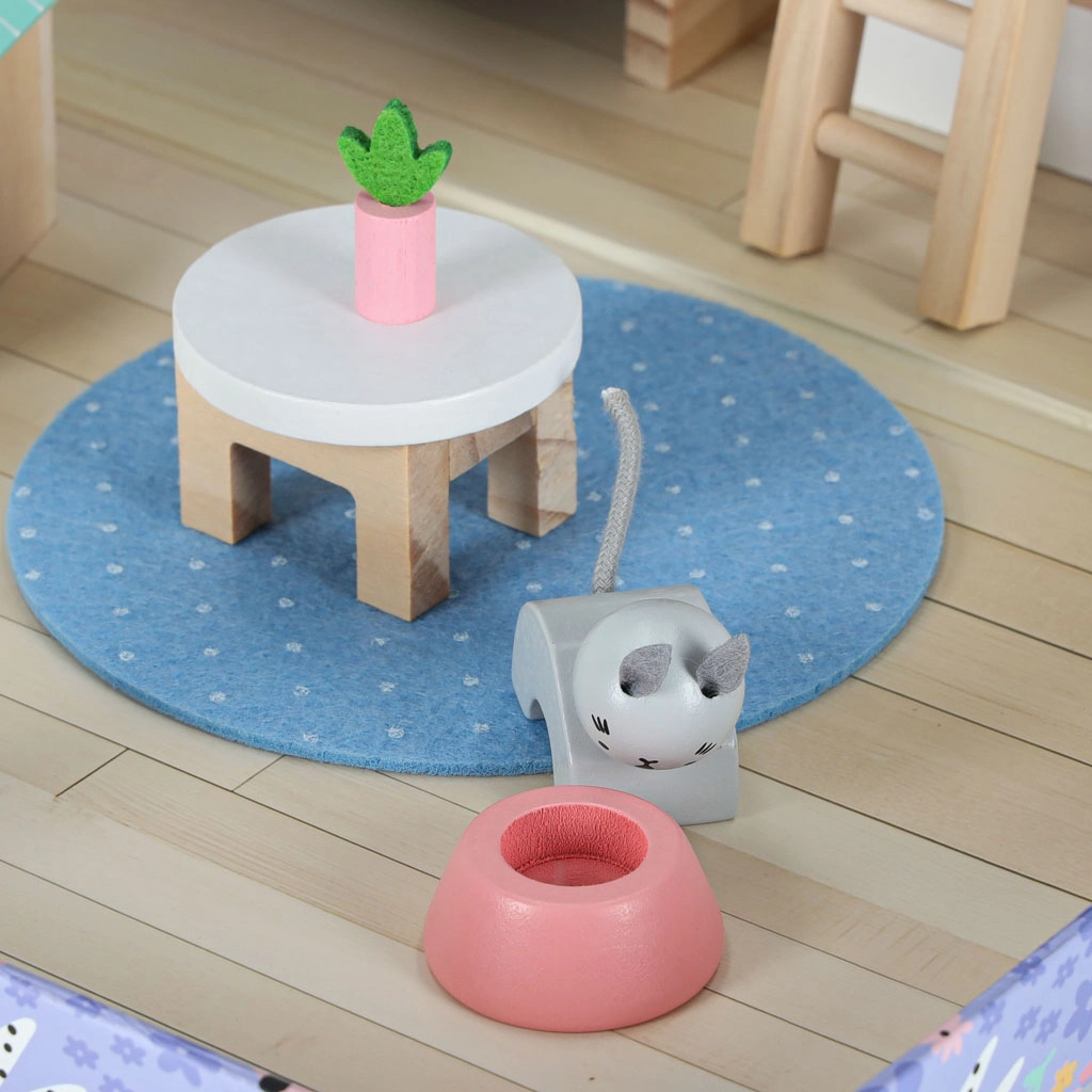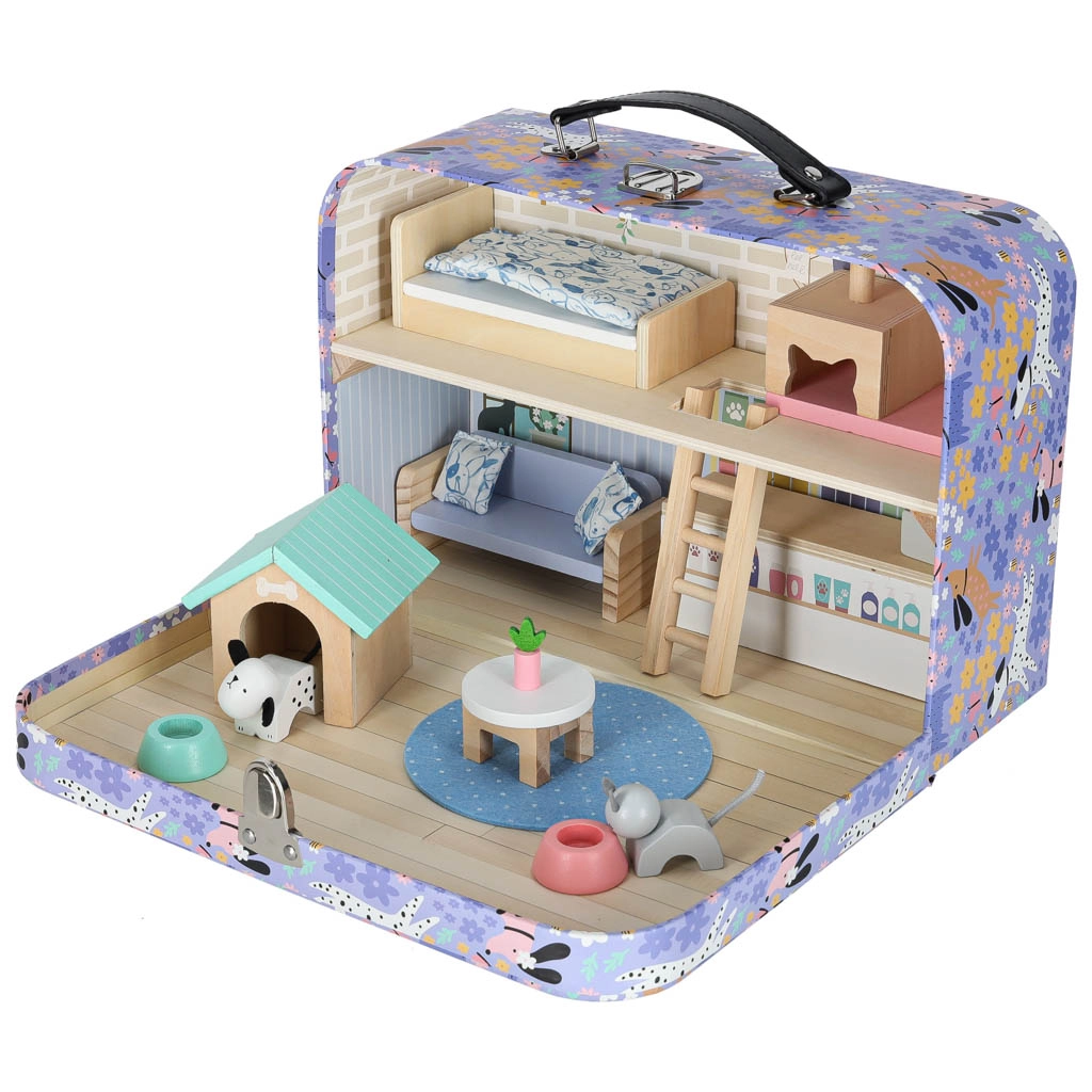 Cette maison de poupée portable en valisette se transforme, une fois ouverte, en un mini-logement à deux étages douillet avec de belles illustrations. Idéale comme cadeau d’anniversaire ou de Noël, elle ravira les enfants qui aiment les animaux et les histoires imaginatives.