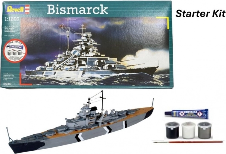Le Revell Starter Kit Bismarck à l’échelle 1:1200 est un excellent choix pour les débutants comme pour les modélistes confirmés. Il comprend tout le nécessaire pour le montage – maquette en plastique, peintures de base, colle, pinceau et notice, afin que vous puissiez commencer dès l’ouverture de la boîte. Le modèle reproduit fidèlement le légendaire cuirassé Bismarck avec des détails réalistes de coque, de pont et de superstructures, et propose un schéma de peinture authentique pour un rendu historiquement exact.